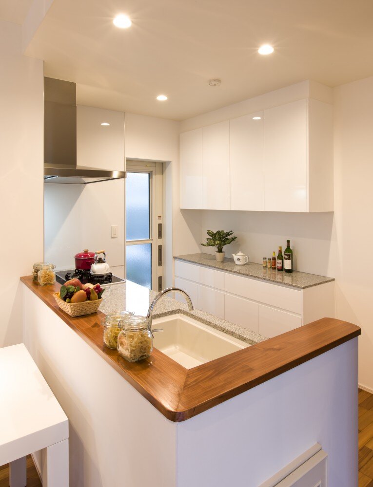 「見せる収納」でキッチンをスタイリッシュに引き立たせる。