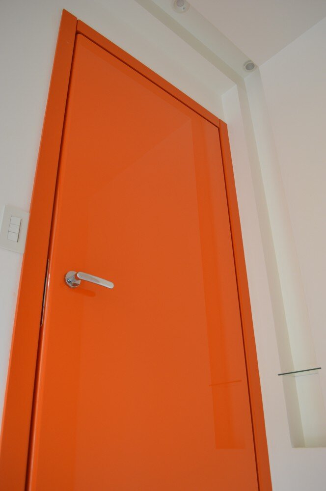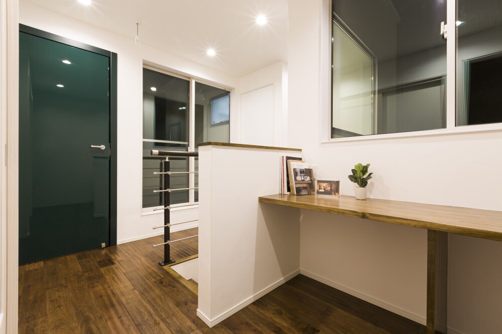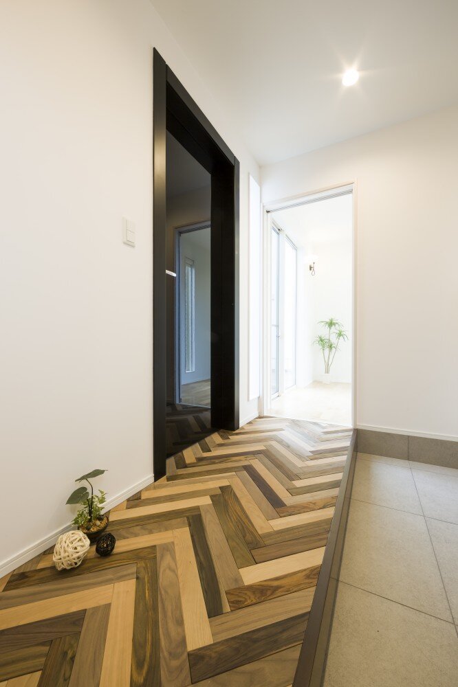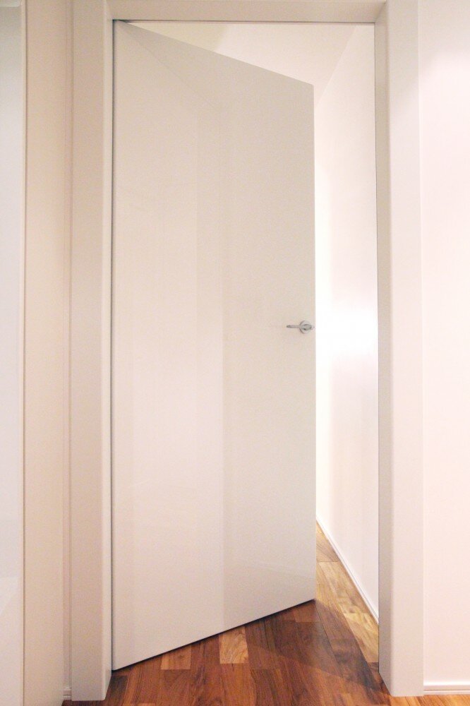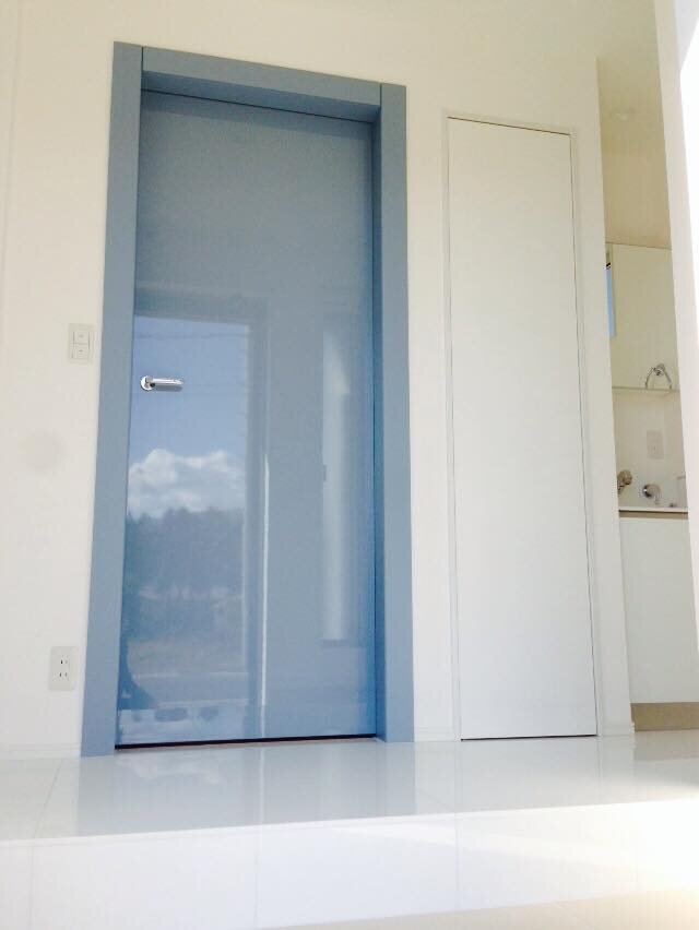 まるで、ドアの向こうに広がる空間を想像させる美しい鏡面ドア。